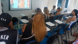 No Auditório da otics, a Coordenadora de Projeto da IUBAAM Zilda Santos ministrando treinamento para capacitação dos profissionais de saúde do CMS Nagib Jorge Farah para realizarem Grupos de Gestantes na unidade.